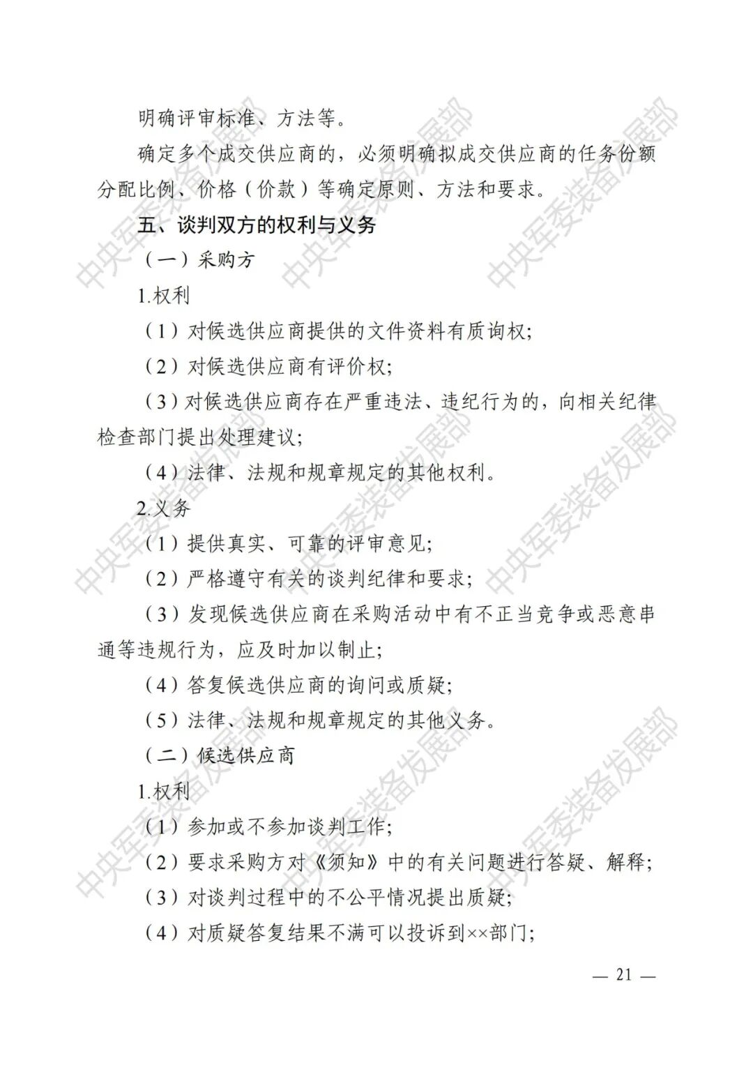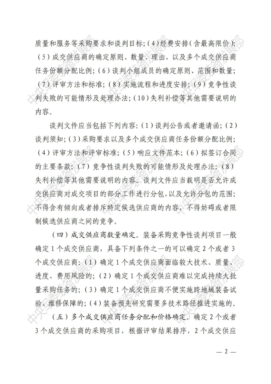 装备发展部:关于加强“十四五”期间装备采购竞争性谈判工作的措施要求(公开版)