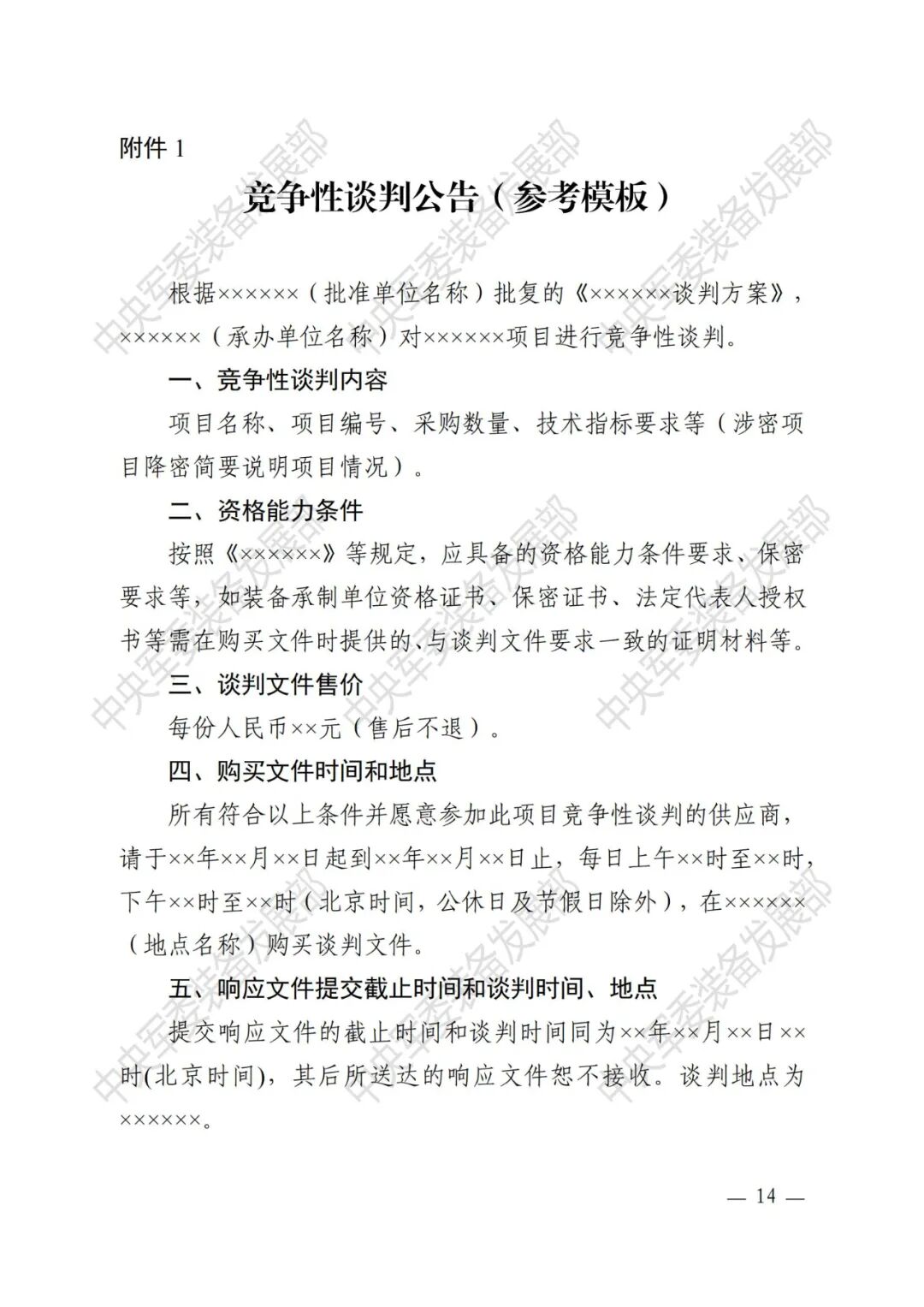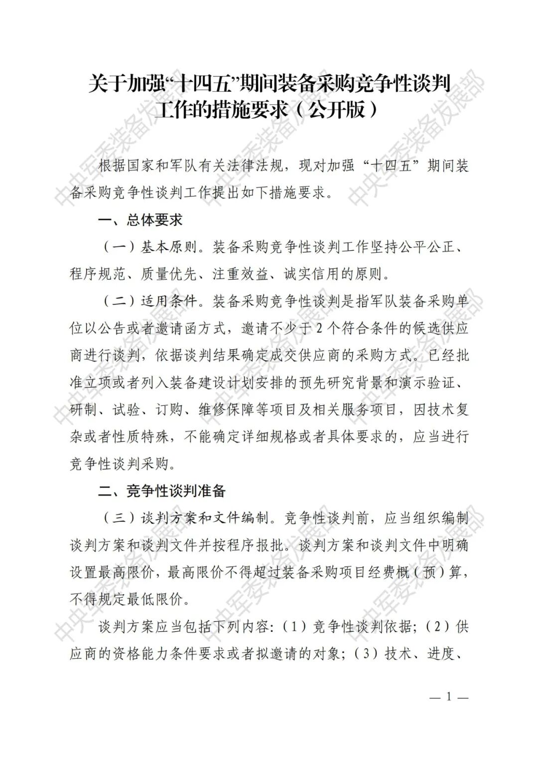 > 装备发展部:关于加强“十四五”期间装备采购竞争性谈判工作的措施要求(公开版)