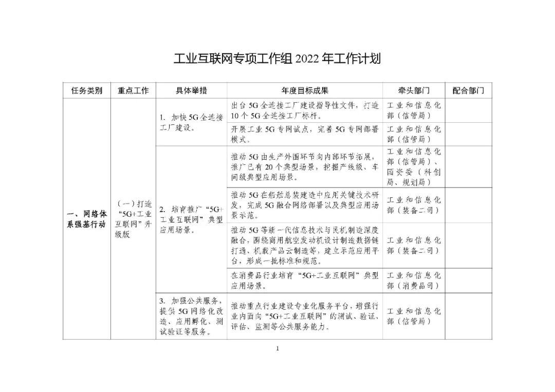 经商各单位同意,现将《工业互联网专项工作组2022年工作计划》印发给你们,请认真抓好落实。