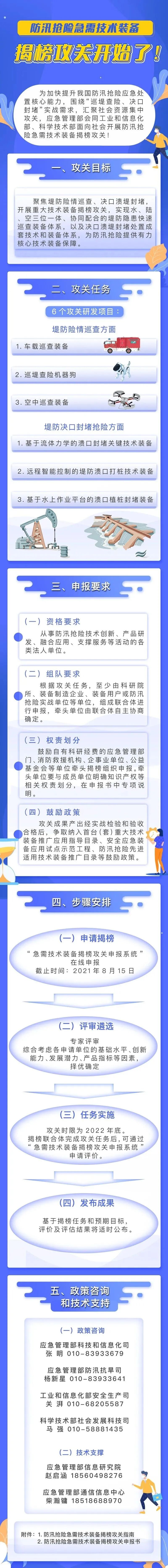 为加快提升我国防汛抢险应急处置核心能力,围绕“巡堤查险、决口封堵”实战需求,汇聚社会资源集中攻关,应急管理部会同工业和信息化部、科学技术部面向社会开展防汛抢险急需技术装备揭榜攻关,现将有关事项通知如下: