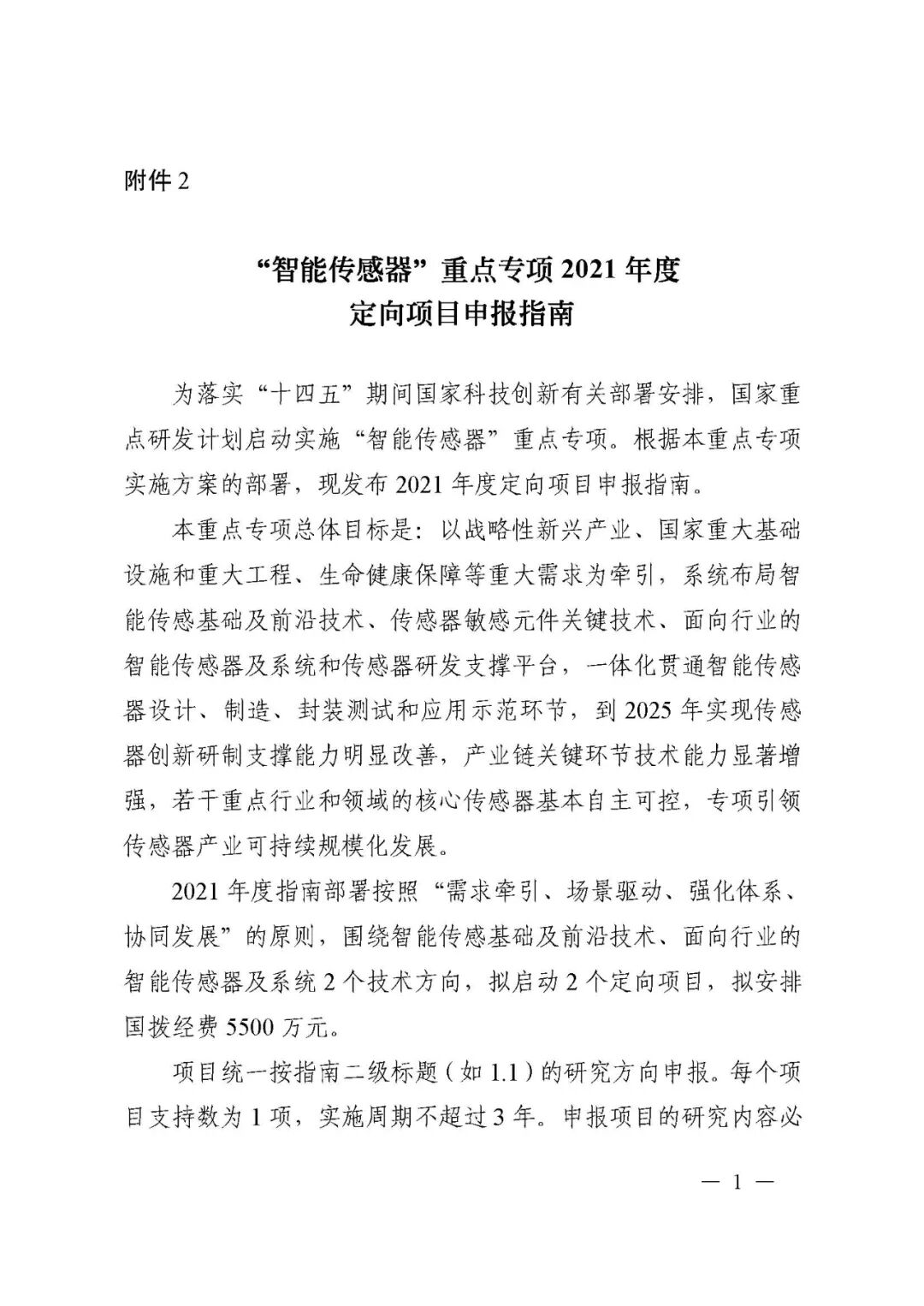 国家重点研发计划“智能传感器”重点专项2021年度定向项目申报指南